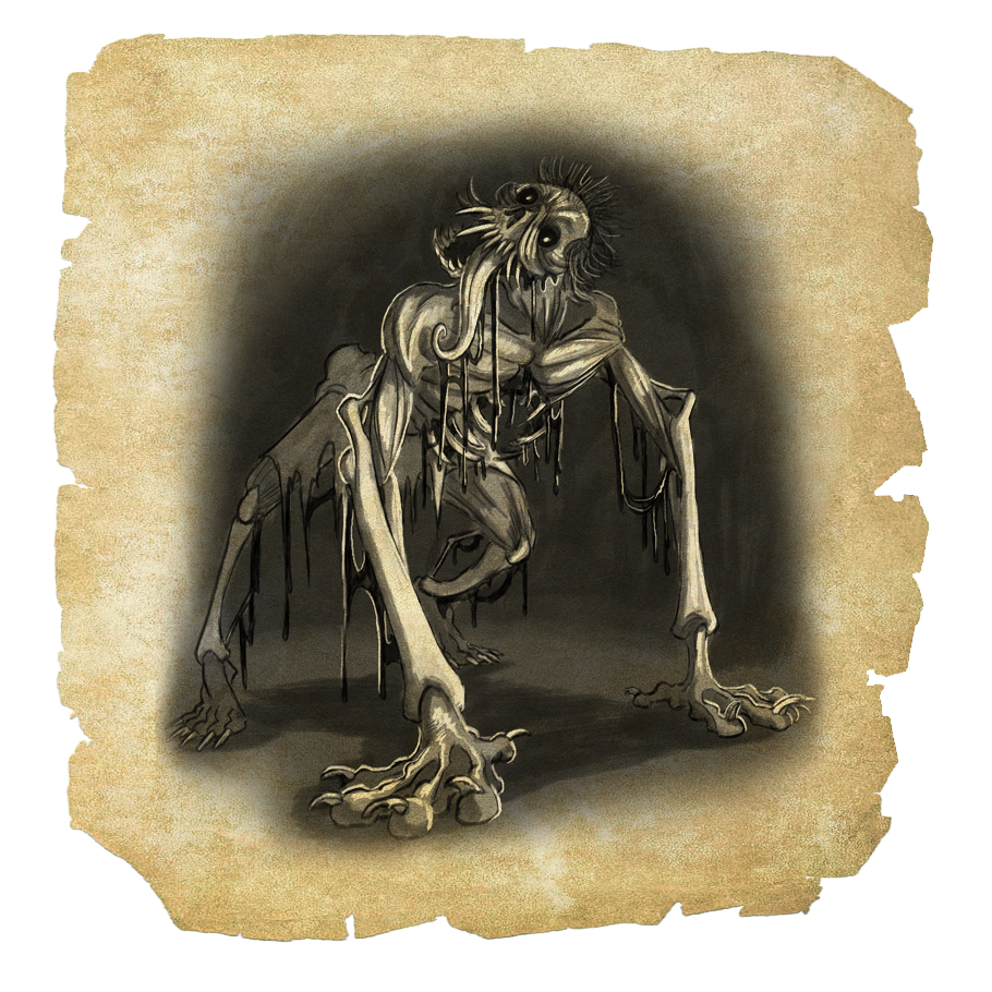 Attributes: [dependent on state of deterioration] Necrotic blackening flesh, muscle turned to hide, glowing red eyes, elongated tongue, profuse salivation, talons on both hands and feet, smells of death, inhuman strength and unlimited stamina