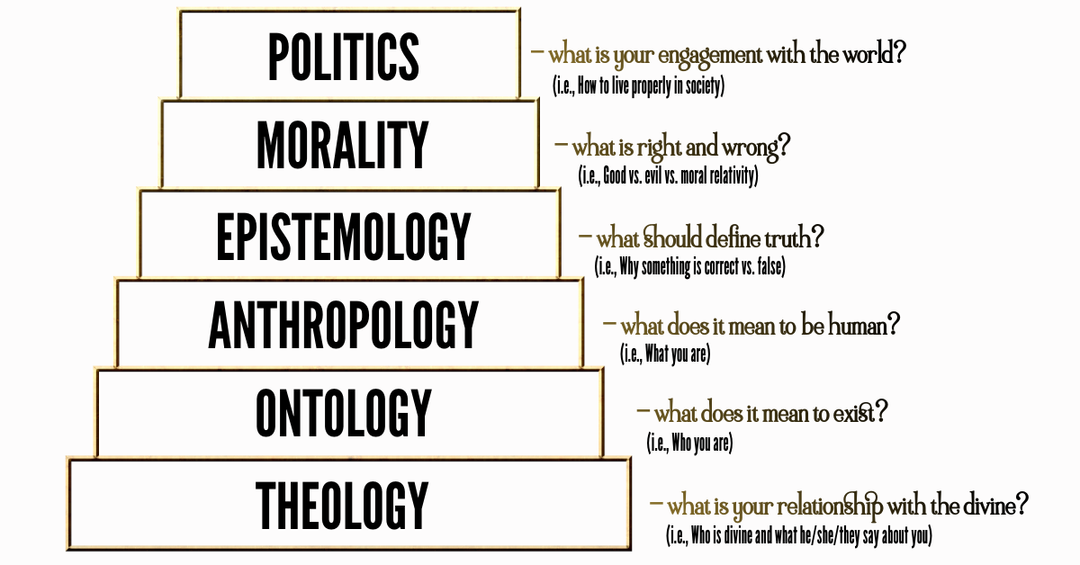 While I wish I could cite my original source, this patristic pyramid provides a ready-made explanation. Here, Aquinas-style thinking maps the funnel of human thought. Worldviews bind cultures, tribes, and people groups together. They aren’t born overnight. Nor do they change with the season. Worldviews are ingrained.